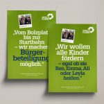Zusammen mit Studio Strada und Gregor Wöltje gestaltete ich die Wahl-Kampagne der Grünen – und deren OB-Kandidatin Sabine Nallinger – zur Münchner Kommunalwahl im März 2014. Dabei setzten wir auf klare Aussagen, die in einer ebenso klaren Gestaltung aufs Plakat kamen. Die der Kandidatin auf weißem – die der Partei auf grünem Grund.