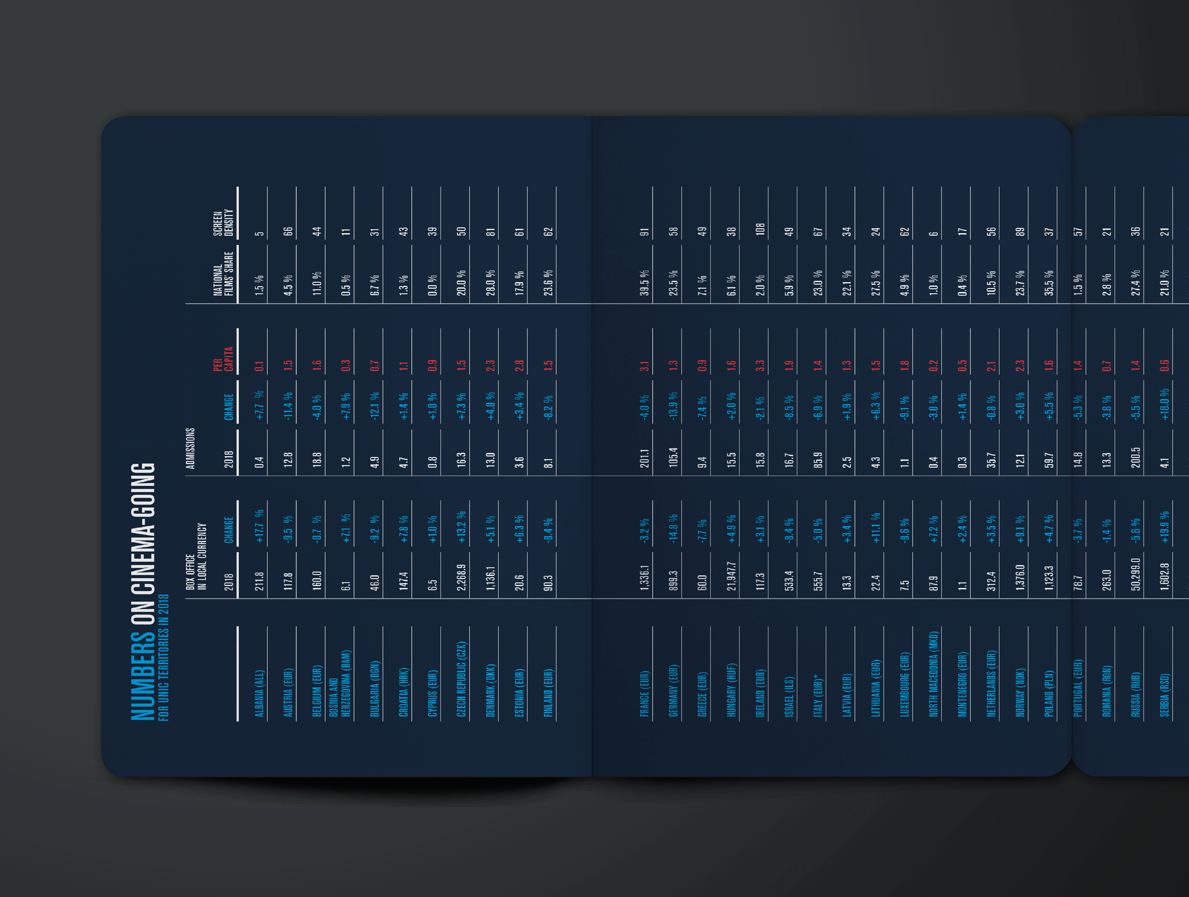 Der Jahresbericht liefert aktuelle Zahlen und Grafiken aus der Branche, berichtet über technischen Neuerungen und Innovationen und benennt die erfolgreichsten Filmproduktionen des letzten Jahres. Der Jahresbericht wurde auf Munken / Gmund Colorplan gedruckt und erschien auf Englisch.